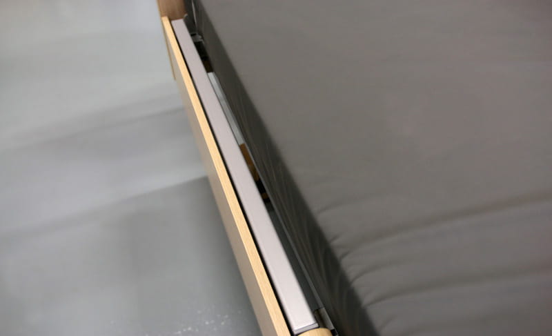 De tussenruimte tussen zijelement en ligvlak is gesloten. Dit beschermt tegen mogelijke ongelukken ten gevolge van verwarring of beknelling.