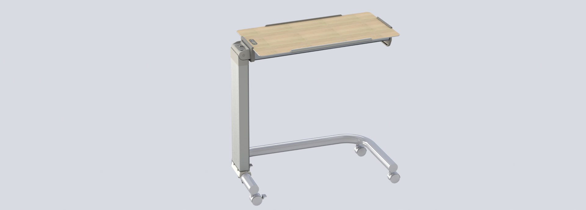 De serveertafel s3 met in hoogte verstelbare en draaibare bedtafel. Wordt de serveertafel niet gebruikt, kan hij ruimtebesparend worden geparkeerd